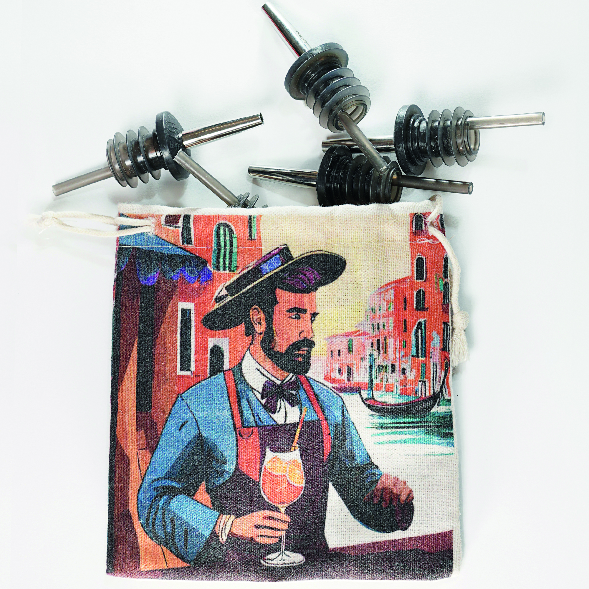Conosco già l’azienda e non vedevo l’ora di avere i loro metal pour. Ho già i loro jigger e barspoon. I metal pour sono bellissimi, versano benissimo. Li ho messi in lavastoviglie e nessun problema. Poi il sacchettino è stupendo e mi permette di portarli in giro.